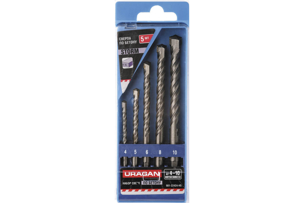 Набор сверл по бетону, "STORM", ударные, шестигранный хвостовик,4; 5; 6; 8; 10 мм, URAGAN 5шт - 901-22424-H5