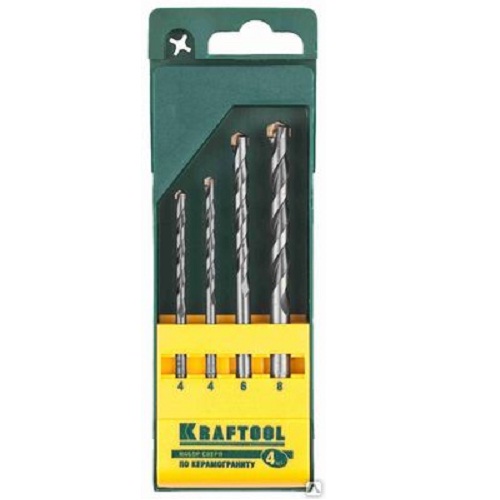 Твердосплавная пластина марки ЛюксембургСверла по керамограниту Kraftool - специалисты узкого профиля. Применяются дл сверление облицовочных материалов из керамогранита, керамики и природного камня.-Комплектация: 4 шт.: Ø 4,4,6,8 мм