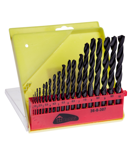 Набор сверл по металлу, 19 шт., 1,0-10,0 мм, шаг через 0,5 мм, пластмассовый короб (Hobbi) - 36-8-307
