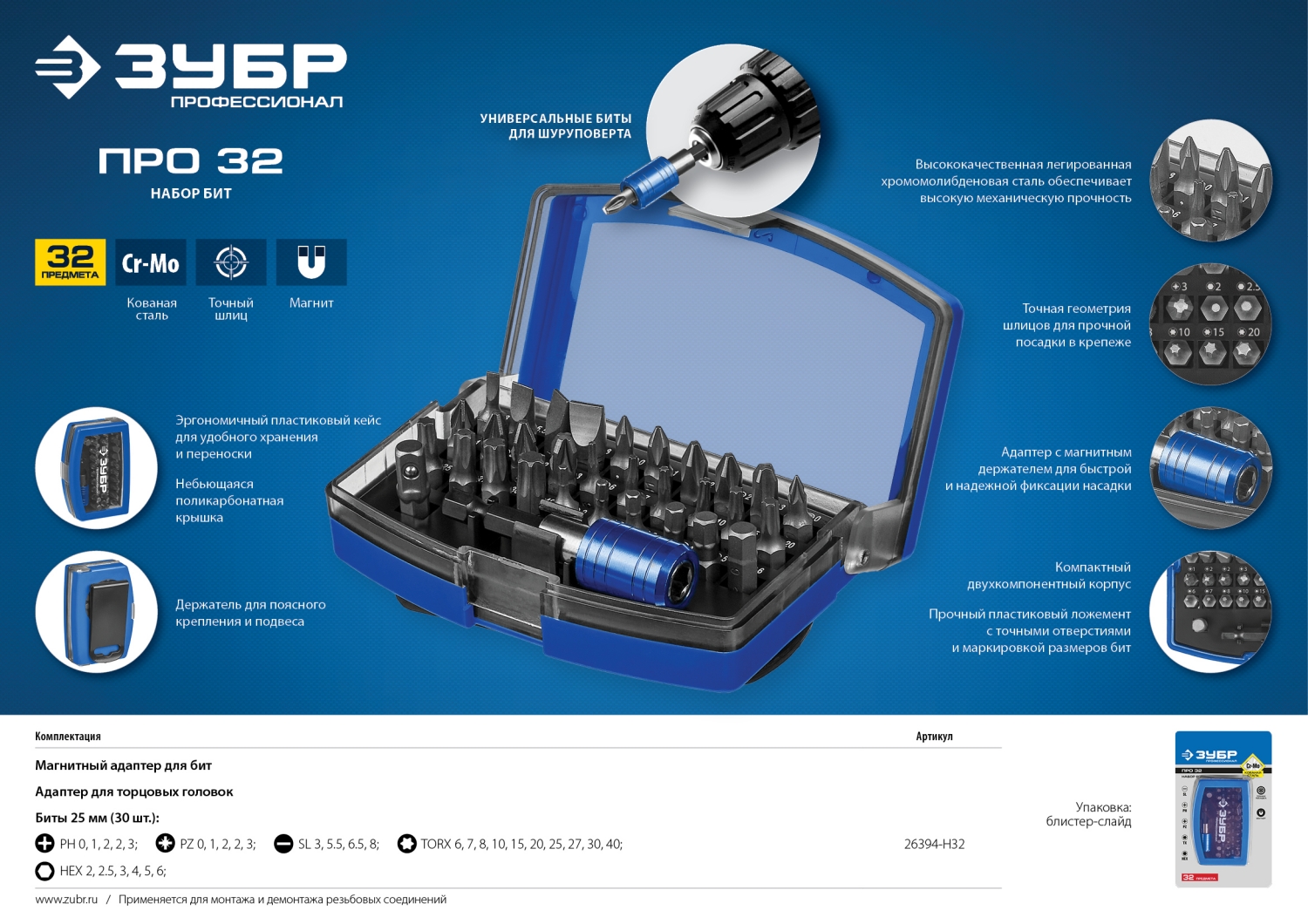 Набор битов "ПРО-32", CR-Mo, в боксе, ЗУБР - 26394-H32