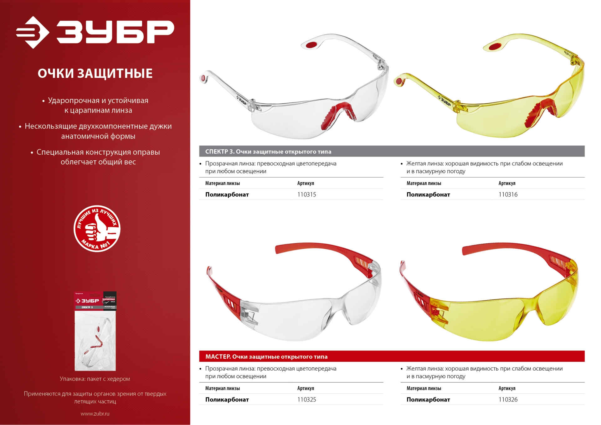 Очки защитные ЗУБР 110316, предназначены для защиты органов зрения от твердых летящих частиц. Желтая линза обеспечивает хорошую видимость при слабом освещении и в пасмурную погоду. Ударопрочные, долговечные, устойчивы к царапинам. Анатомичная форма заушин создает комфорт при ношении.