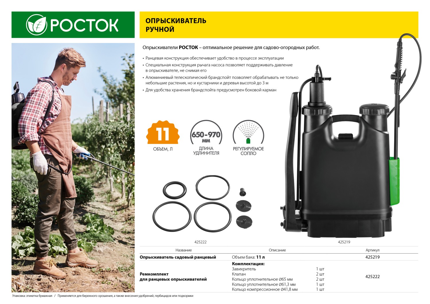 Опрыскиватель садовый РОСТОК, ранцевый, телескопический удлинитель, 11л - 425219
