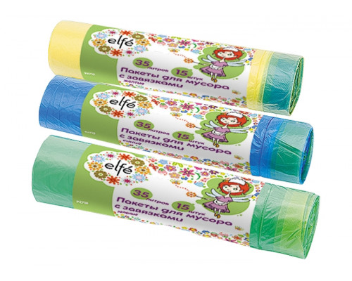 Пакеты для мусора с завязками 35л*20шт синие, Россия// Elfe
