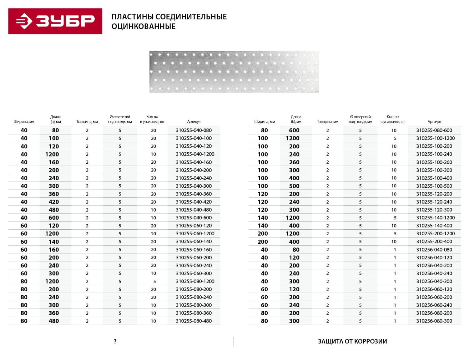 Пластина соединительная 60х300х2 мм ЗУБР "МАСТЕР" (20 шт) - 310256-060-300