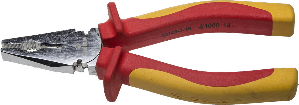 Плоскогубцы ЗУБР "ПРОФЕССИОНАЛ" "ПРОФИЭЛЕКТРИК", диэлектрические комбинир., двухкомп рукоятка. 160мм - 22145-1-16