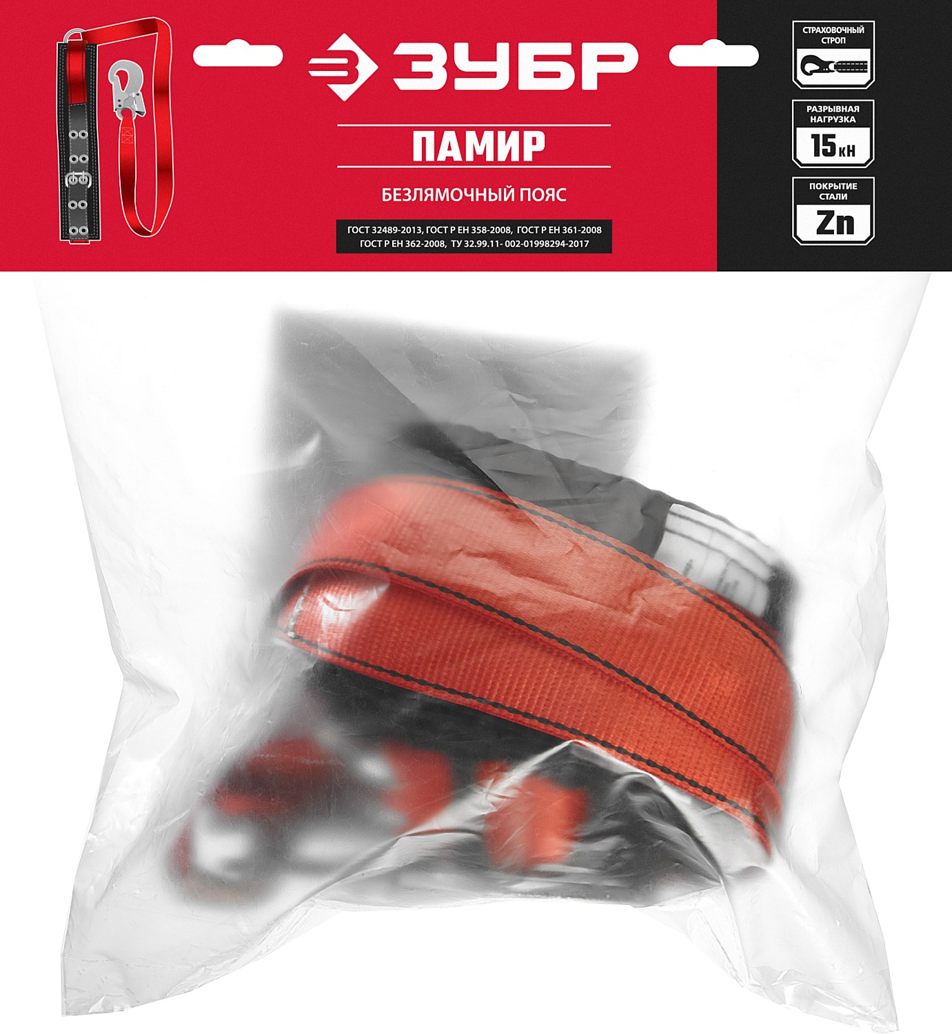 Безлямочный предохранительный пояс Зубр Памир, ленточный строп, 11585 предназначен для предотвращения падения человека с высоты. Обеспечивает безопасность во время работы.