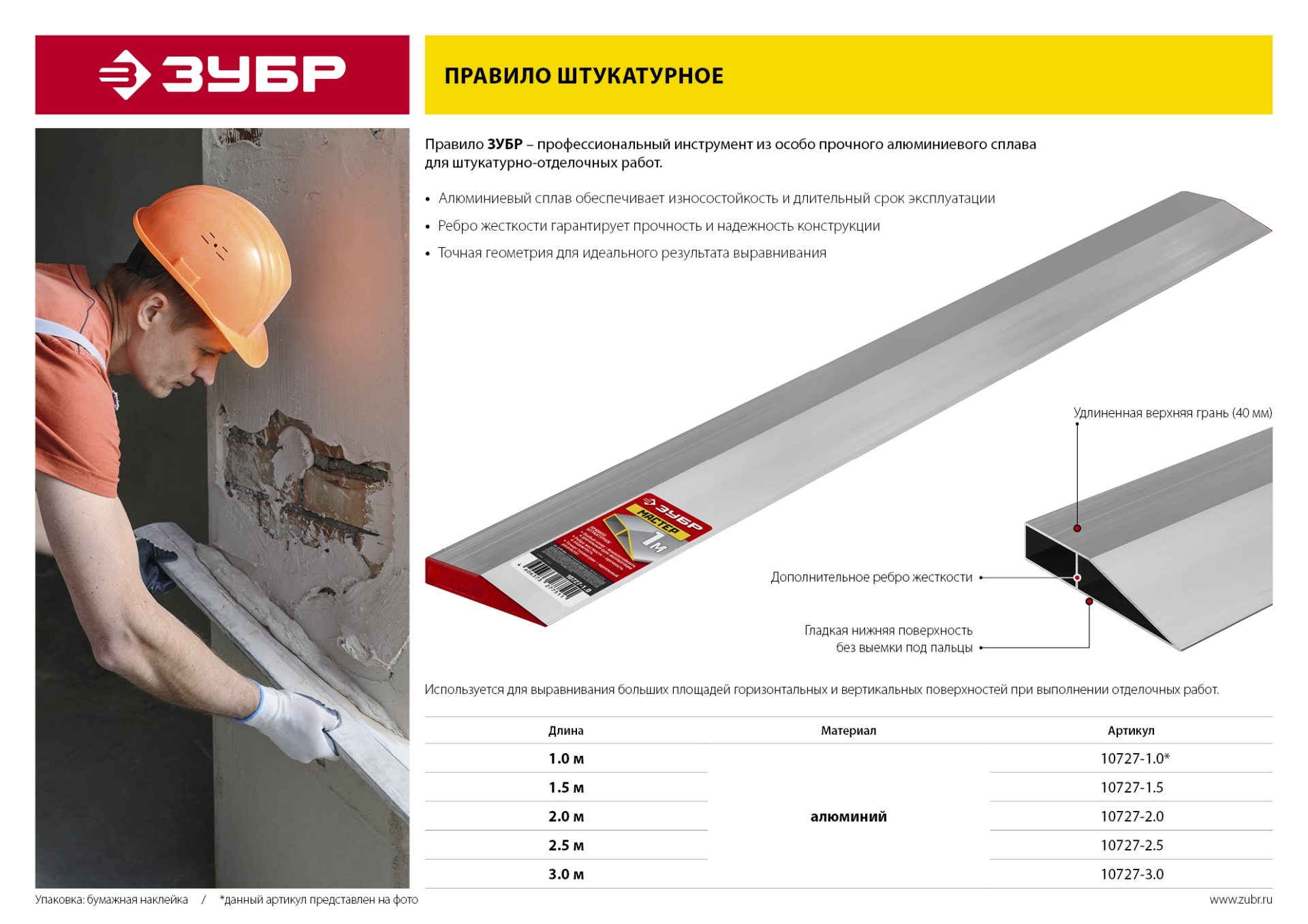 Правило ЗУБР – профессиональный инструмент из особо прочного алюминиевого сплава для штукатурно-отделочных работ.