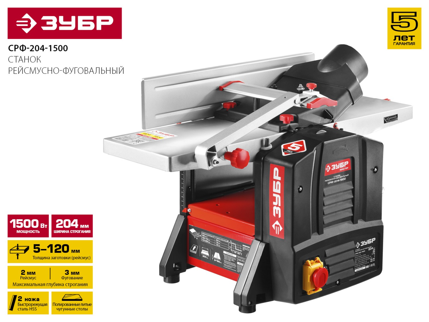 Рейсмусно-фуговальный станок ЗУБР МАСТЕР СРФ-204-1500 - СРФ-204-1500