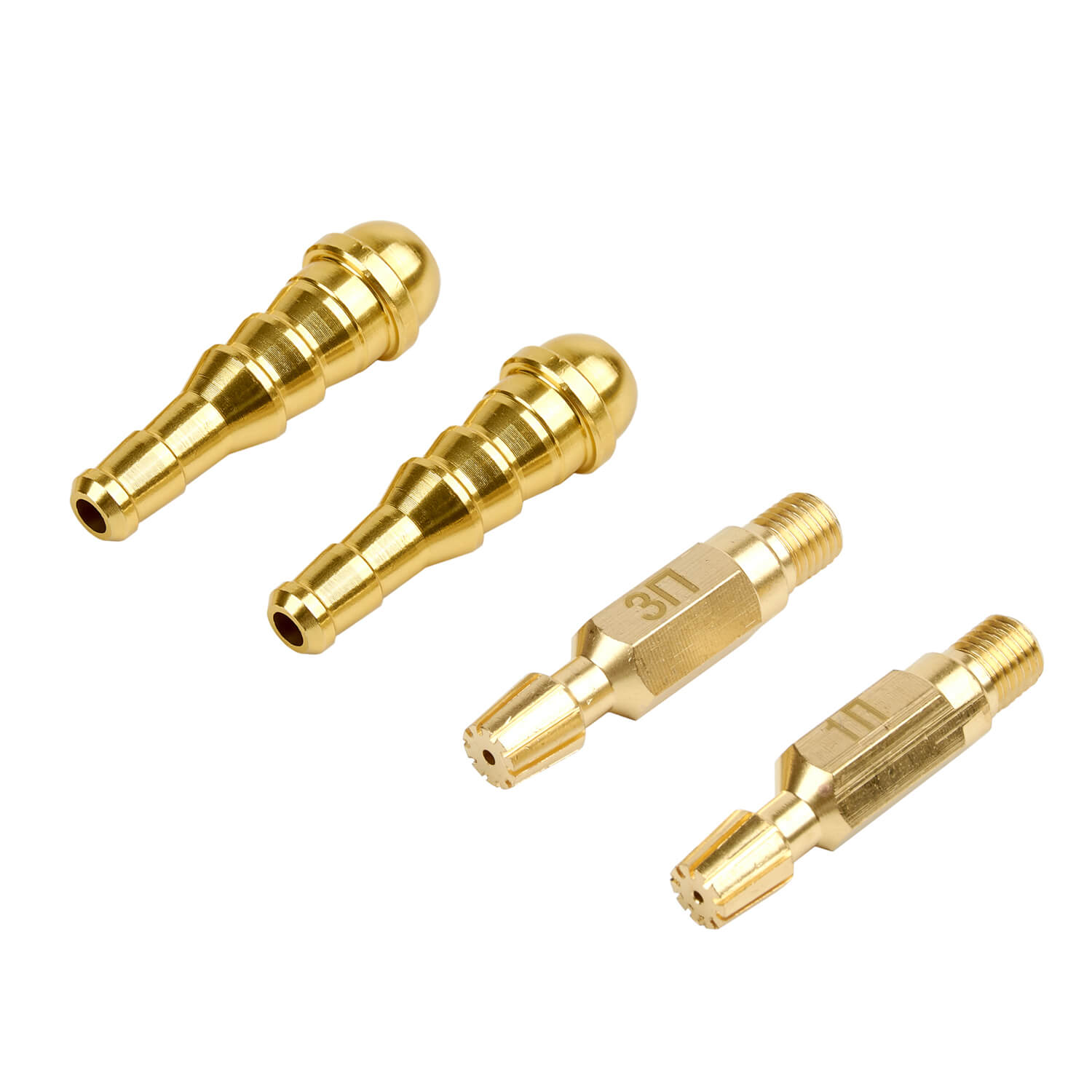 Резак поставляется в сборе с внутренними латунными мундштуками №1П, 3П с шлицевыми пазами для выхода подогревающего пламени и медным наружным мундштуком №1П. Давление газа на входе и расход зависит от установленного внутреннего мундштука. В руководстве по эксплуатации указаны ориентировочные данные.