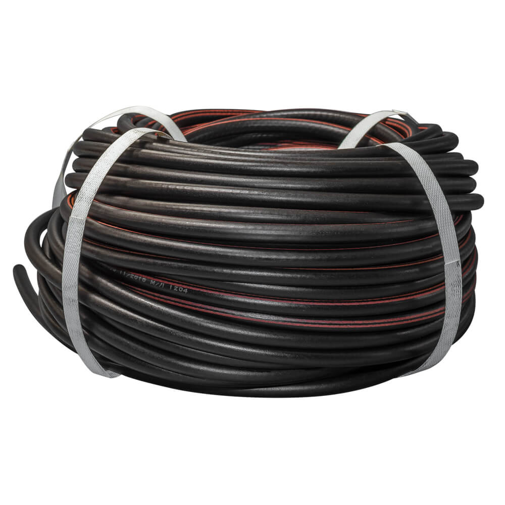 Рукав газовый черный с красной полосой предназначен для подачи ацетилена, пропан-бутана, метана (природного газа) от баллона или газового трубопровода при максимальном давлении не более 0,63 МПа. Рукав I класса, что обеспечивает его прочность и эластичность для работы под таким давлением. Рукав рассчитан на применение в средней полосе России в климатическом режиме от -20°С до +50°С. Широкий диапазон температур делает рукав универсальным. Рукав выполнен по ГОСТ 9356-75 и соответствует всем регламентам на территории России и стран ЕАЭС.