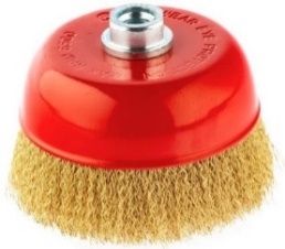Щетка используется совместно с дрелями. Применяется для зачистки от лака, краски и ржавчины различных поверхностей. Рабочая часть состоит из стальной латунированной волнистой проволоки толщиной 0,3 мм.