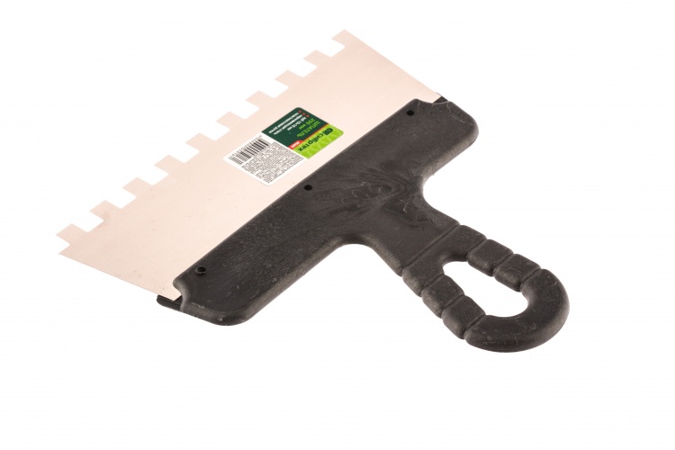 Полотно шпателя изготовлено из нержавеющей стали 30Х13 (12Х17). Облегченная ручка из ударопрочной пластмассы. Ручка шпателя имеет специальную (изогнутую) форму, что обеспечивает максимально удобную работу. Шпатель предназначен для нанесения, выравнивания и сглаживания шпаклевочного слоя на больших и малых поверхностях.