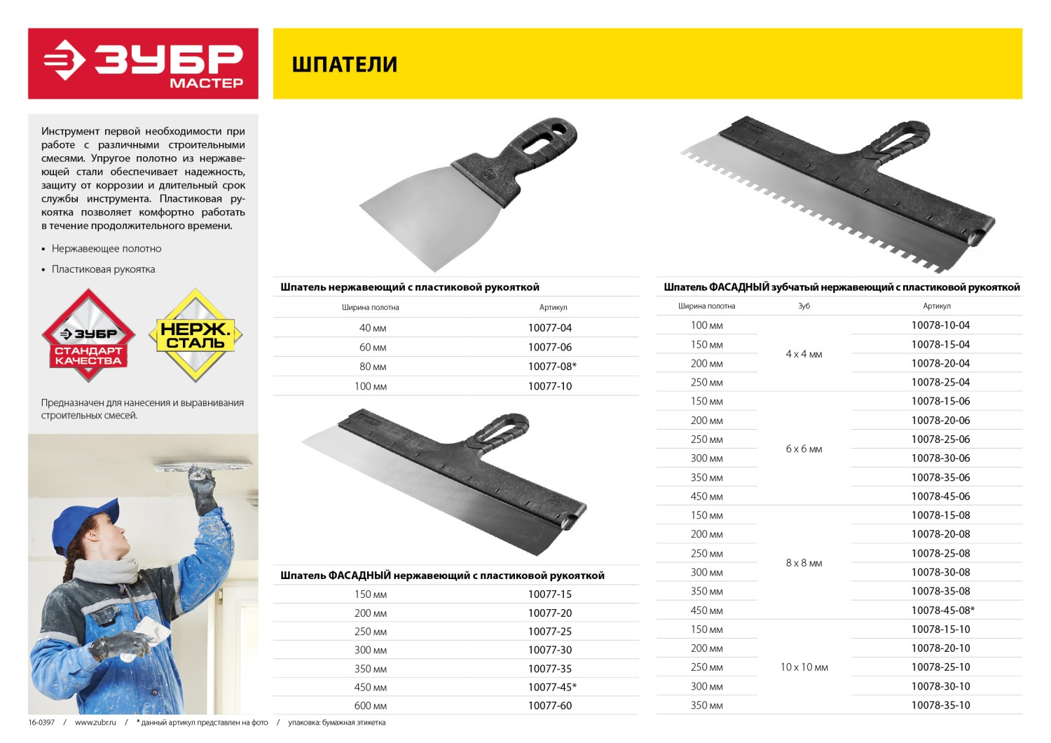 нержавеющее полотно, пластмассовая рукояткаНезаменимый инструмент при работе с различными строительными смесями, полотно из нержавеющей стали обеспечивает надежность и долгий срок службы, а удобная пластмассовая рукоятка создает условия для комфортной работы.-Вид шпателя: Шпательная лопатка