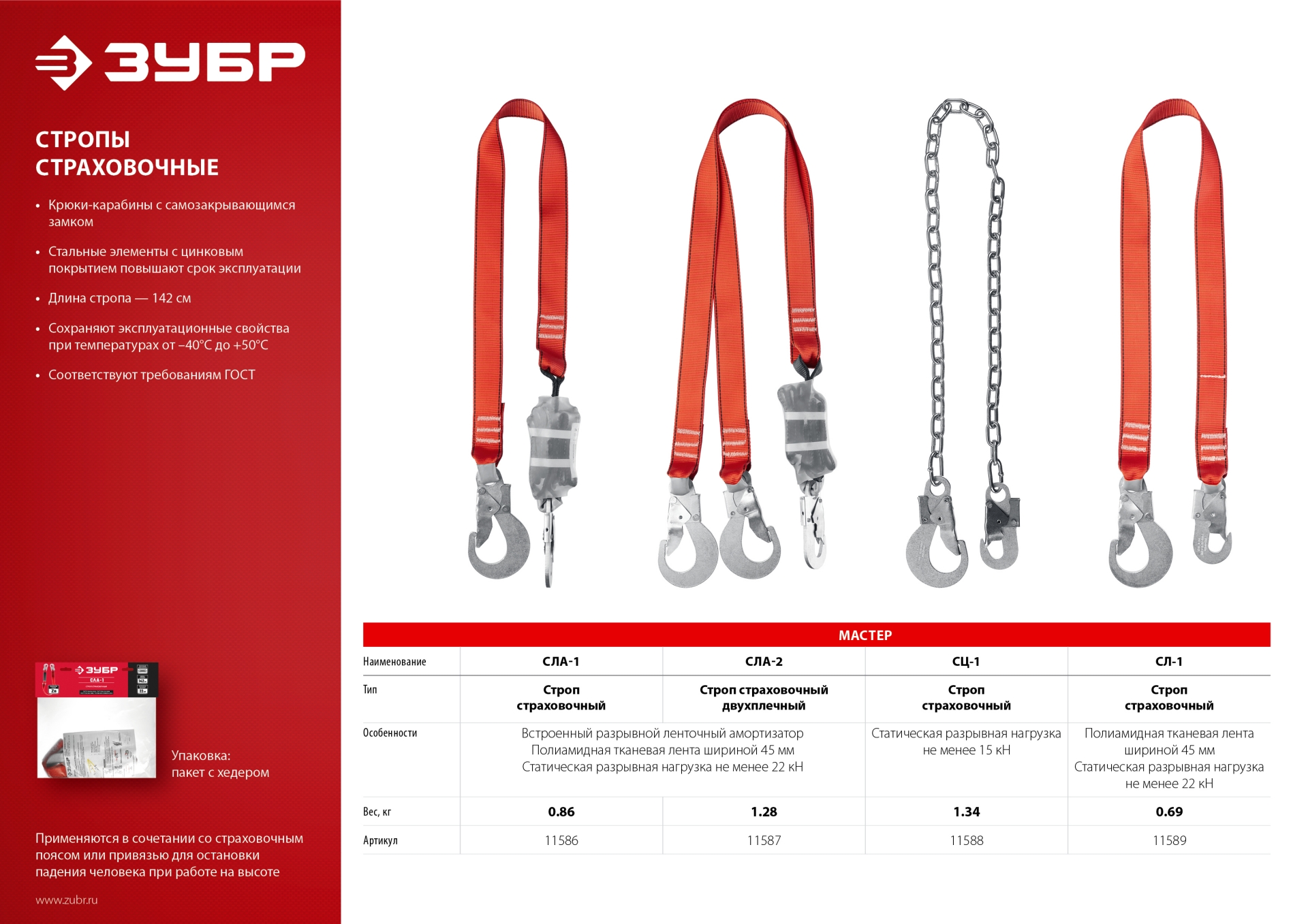 Строп одноплечный ЗУБР 11589, применяется как средство защиты от падения с высоты.