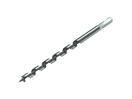 Изготовлено из углеродистой стали с твердостью режущей части 40 HRС. Сверло имеет центрирующее острие со спиральной нарезкой, уменьшающей осевую нагрузку, и острую подрезную кромку, которая позволяет с высокой точностью просверлить отверстие с гладкими поверхностями, предотвращая смещение сверла и исключая необходимость в предварительном засверливании. Шестигранный хвостовик обеспечивает надежное удержание сверла в патроне.