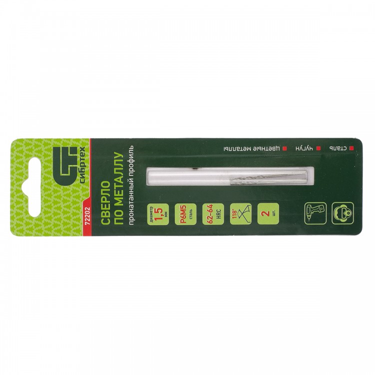 Сверло по металлу, 1,5 мм, Р6М5, 2 шт // СИБРТЕХ - 72202