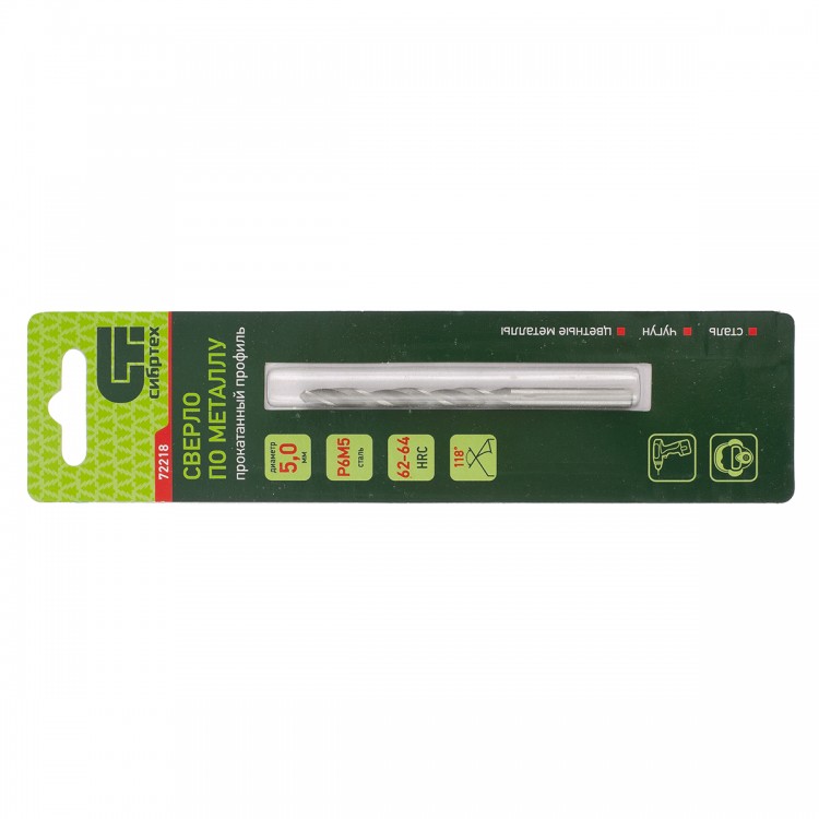Сверло по металлу, 5,0 мм, Р6М5 // СИБРТЕХ - 72218