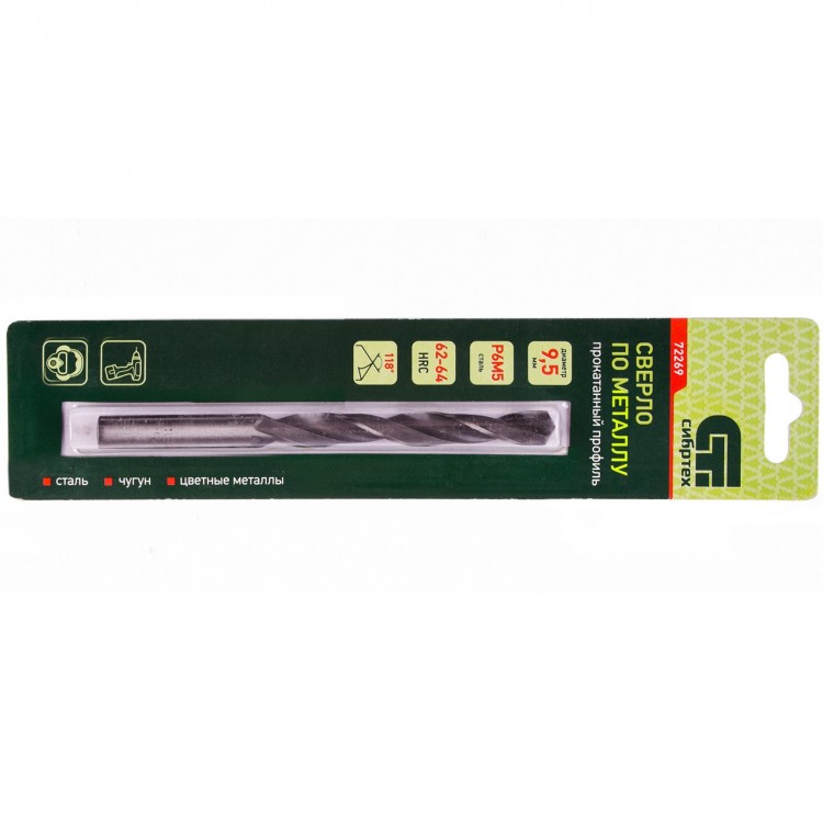 Сверло по металлу, 9,5 мм, Р6М5 // СИБРТЕХ - 72269