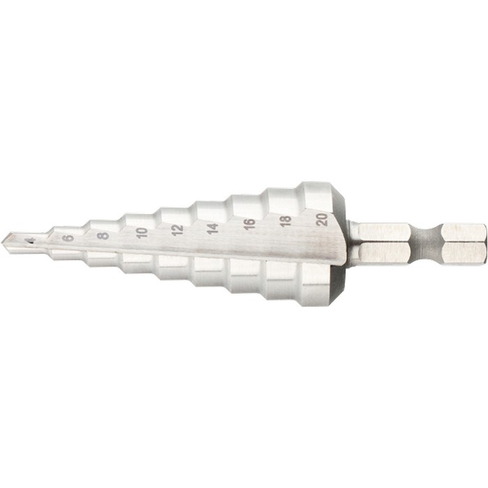 Сверло по металлу ступенчатое 4-6-8-10-12-14-16-18-20 мм, Р6М5, шестигр. хвостовик // БАРС - 72361