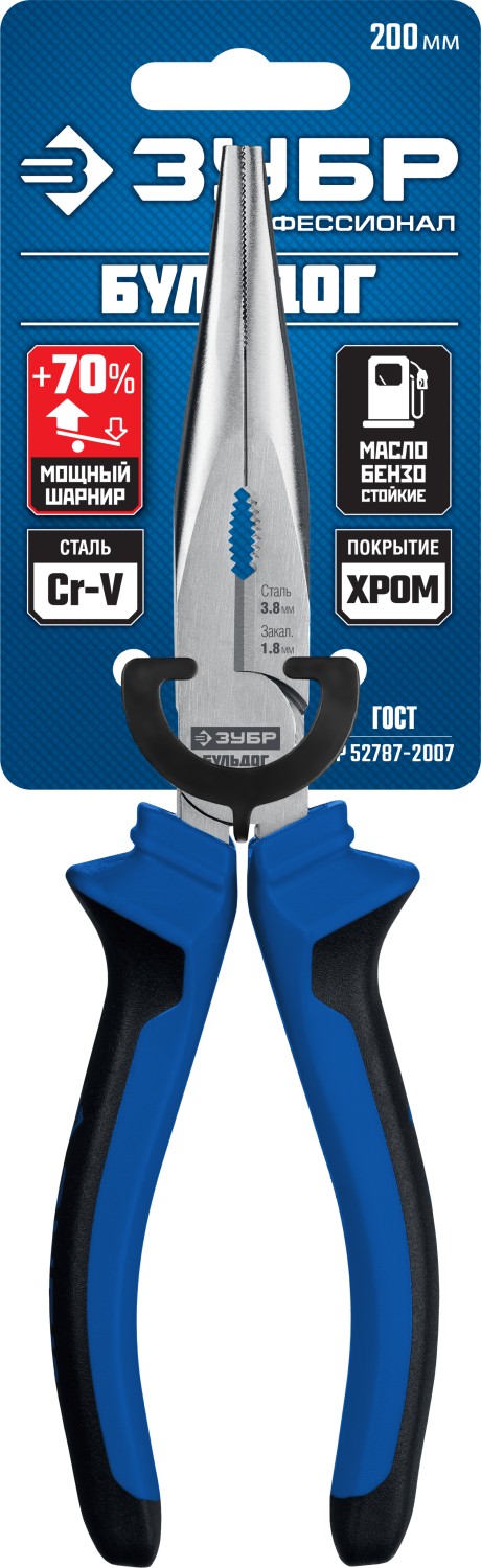 Тонкогубцы "БУЛЬДОГ", Н12Х1, 200мм, ЗУБР "ПРОФЕССИОНАЛ" - 2201-3-20