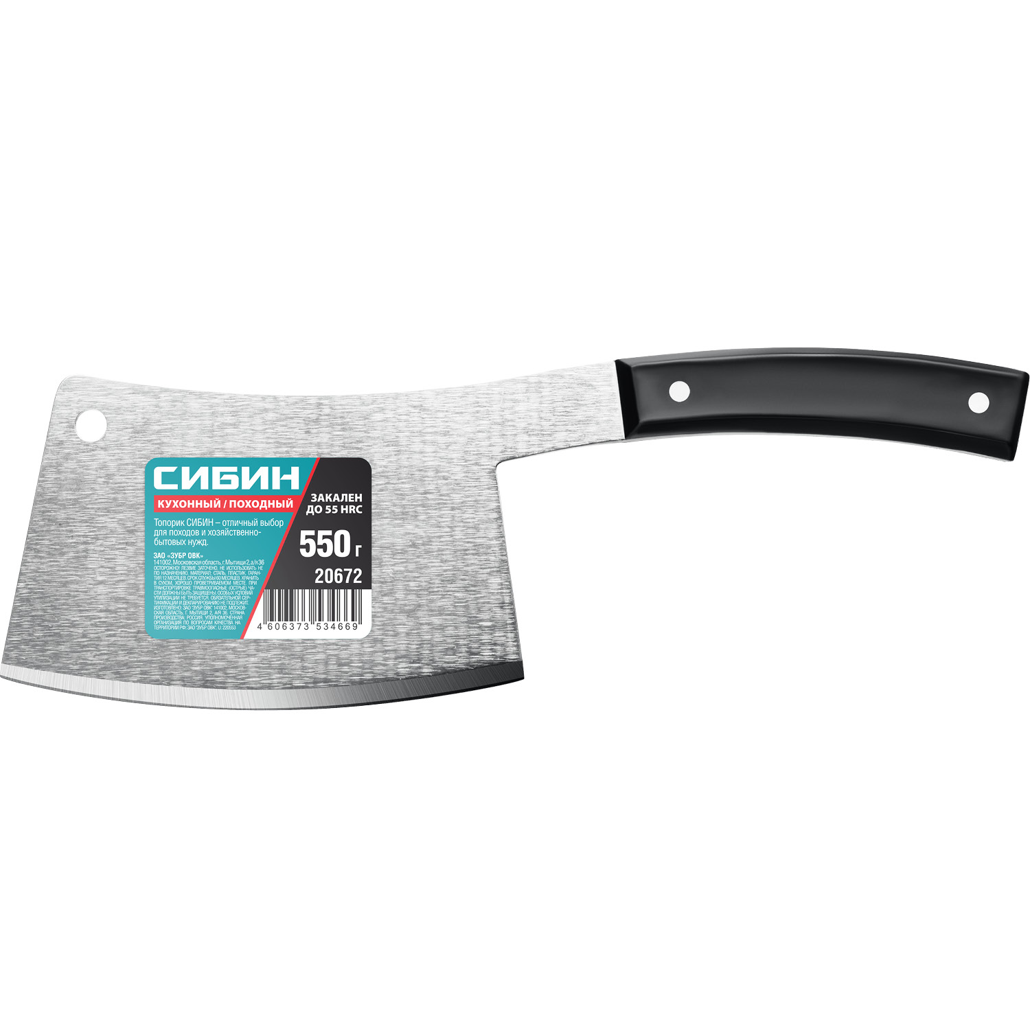 Кухонный топорик СИБИН идеальный помощник за столом и походе! Пружинная сталь, закален до 55 HRC. Округлое лезвие. Защитное антикоррозионное покрытие. Рукоятка из АБС пластика на заклепках из металла. Тип тяпка - проверенная временем форма топора для мяса. Готовое отверстие Ø 10 мм для подвеса и хранения. Отличный выбор для походов и хозяйственно-бытовых нужд.