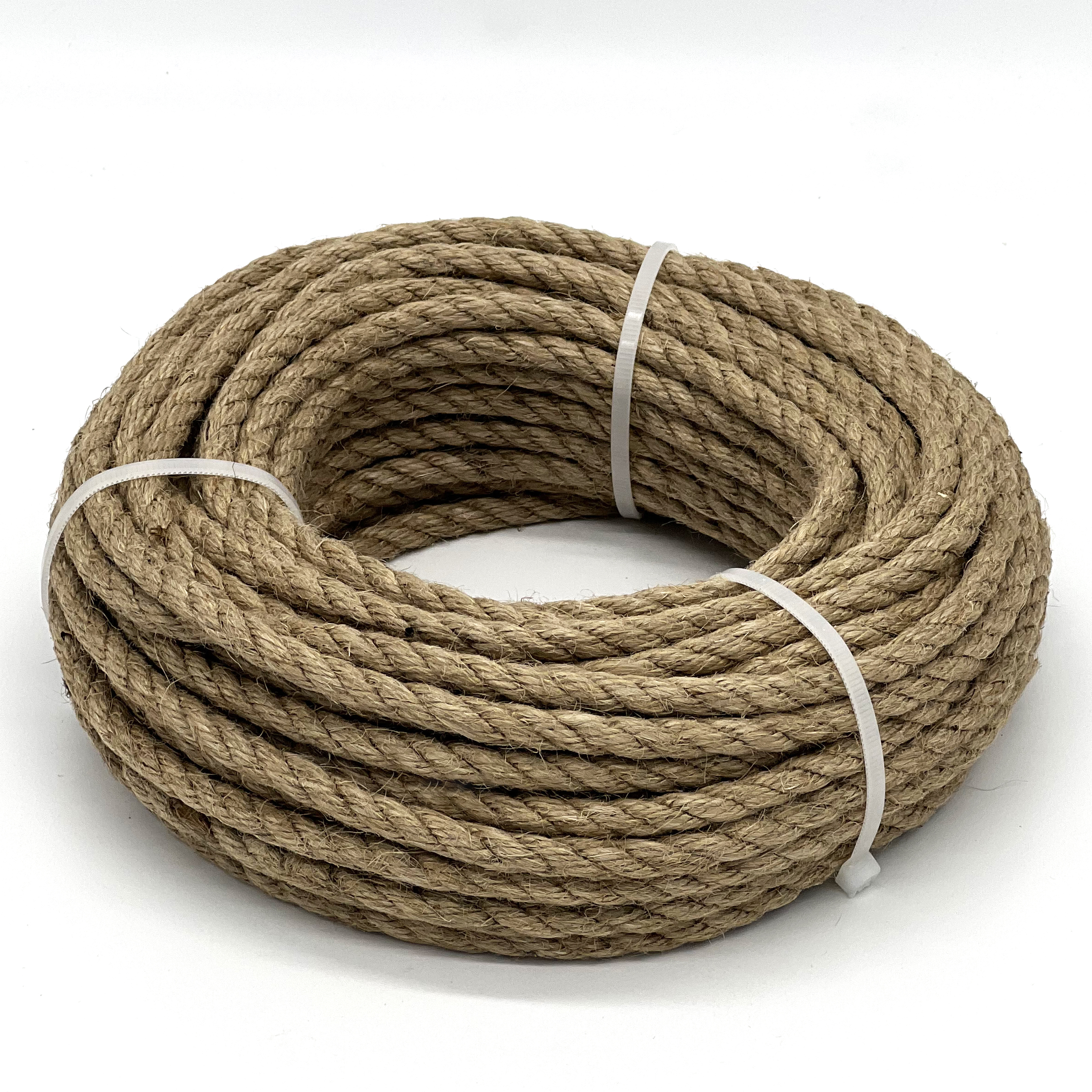 Веревка джутовая получена из кустарника джут, путём плетения и скручивания. Активно веревка используется в различных интерьерных решениях, как для отделки мебели, так и для создания декоративных поделок. Успешно применяется в строительстве, сельском хозяйстве и даже для изготовления домиков и когтеточек для домашних животных. Нашла применение в ландшафтном дизайне Линейная плотность = 15,5ктекс, Форма выпуска - моток, Технология изготовления - кручение, Число прядей - 3.