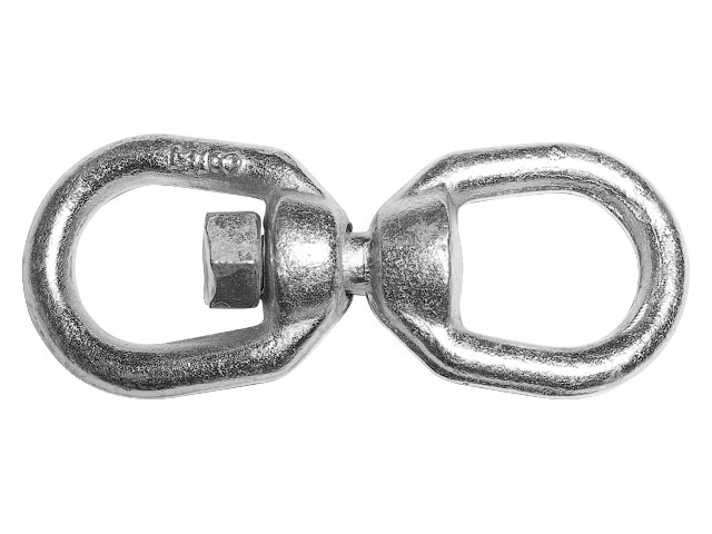 Вертлюг изготовлен из оцинкованной углеродистой стали и предназначен как соединительное звено между двумя тросами, цепями, позволяющее каждому из них вращаться вокруг своей оси. предотвращая их от скручивания.