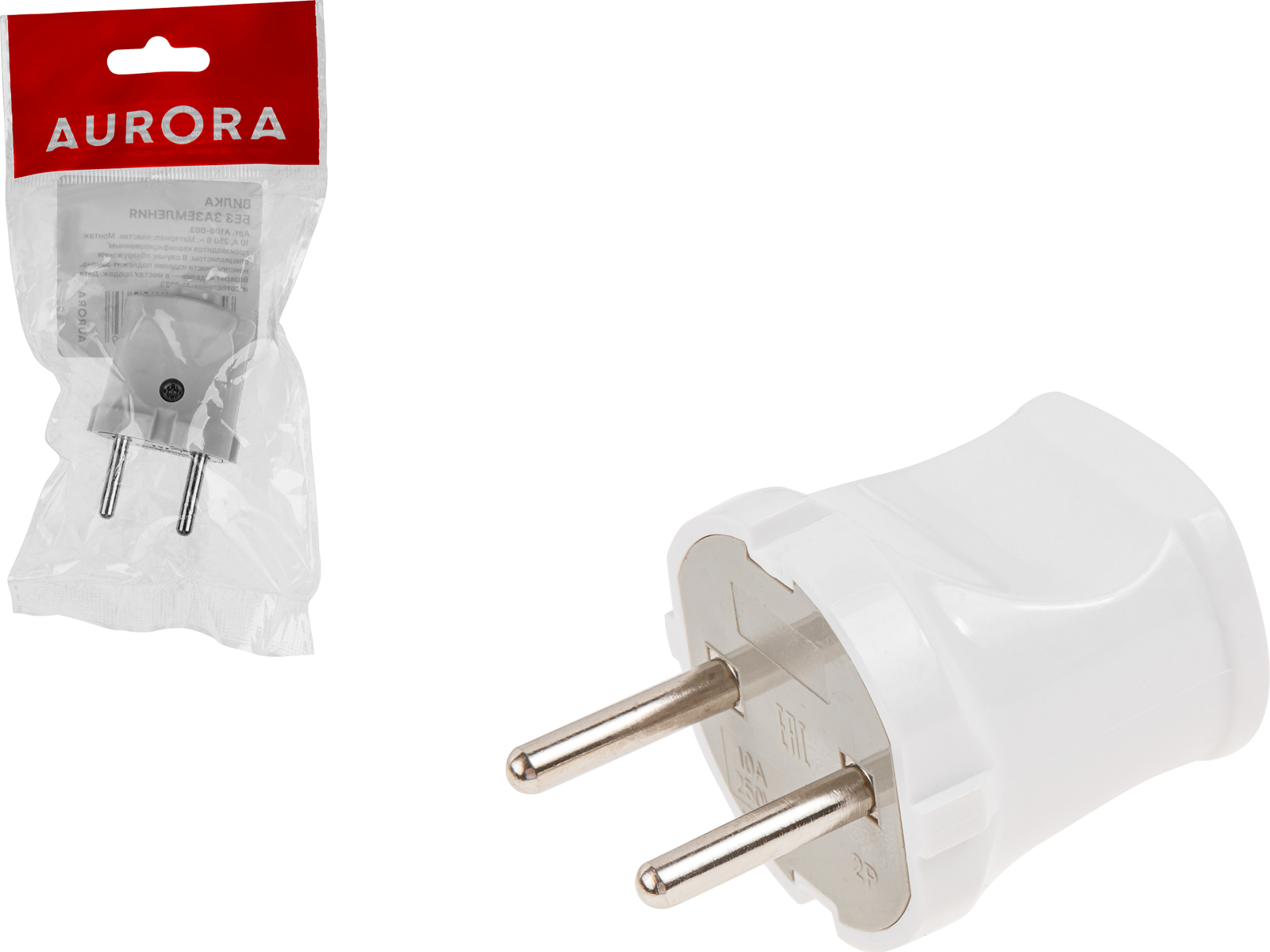 Вилка (б/з, 10А, 250В) белая, AURORA - A100-003