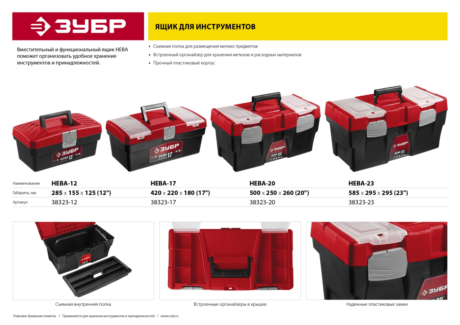 Ящик для инструмента "НЕВА-20" пластиковый, ЗУБР - 38323-20