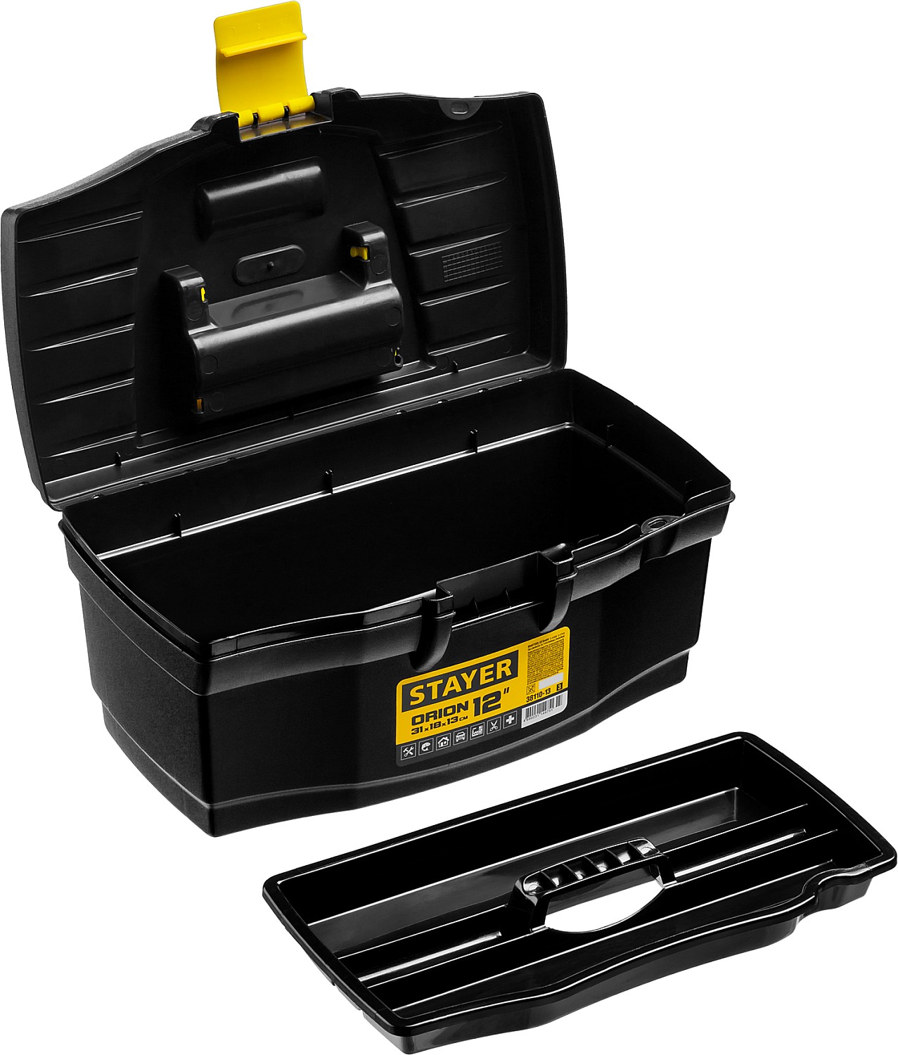 Ящик для инструмента STAYER ORION-12 пластиковый 38110-13_z03 незаменим дома, на рыбалке или в автомобиле. Имеет легкий корпус и идеально подходит как для бытового использования, так и в походе, на рыбалке, в автомобиле.