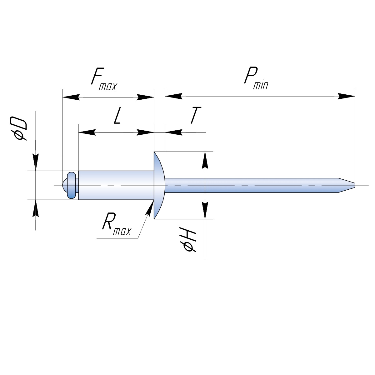 Корпус заклепки изготовлен из специального алюминиевого сплава AlMg3, обладающего улучшенными механическими свойствами: высокая пластичность, повышенная коррозионная стойкость;Для монтажа заклепок достаточно иметь доступ с одной стороны скрепляемых материалов; Благодаря стандартному бортику обеспечивается герметичность соединения. Использование заклепок при монтаже различных конструкций дает возможность профессионалам существенно сократить время работы.Широкий ассортимент заклепок позволяет скрепить разнообразные материалы при помощи заклепочника, создав надежное и прочное неразъемное соединение. Для монтажа заклепок достаточно иметь доступ с одной стороны скрепляемых материалов, монтаж соединения осуществляется при помощи заклепочника. -Материал корпуса: алюминиевый сплав AlMg3 -Материал стержня: оцинкованная сталь