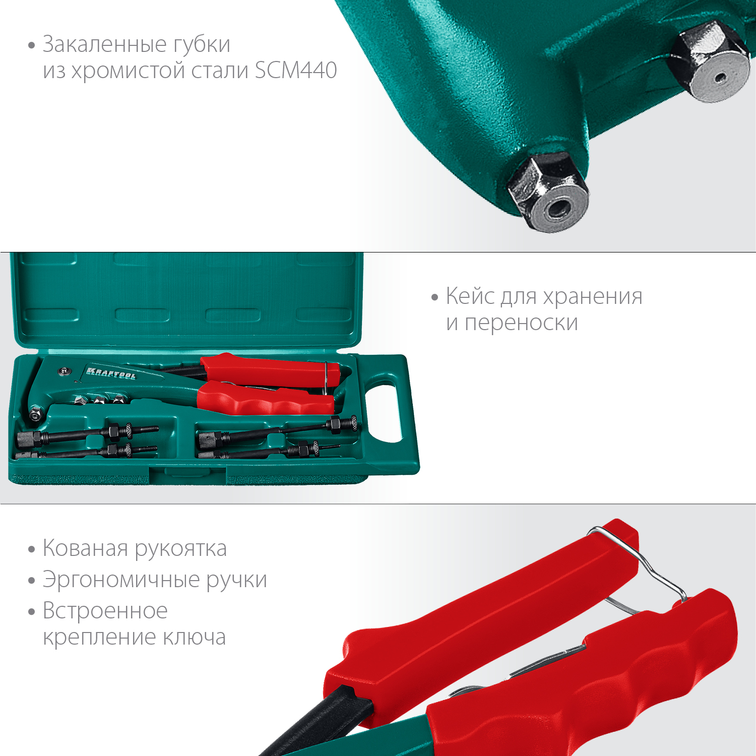 Заклепочник комбинированный, KRAFTOOL "Combo2-M6" кейс, 31180 - 31180