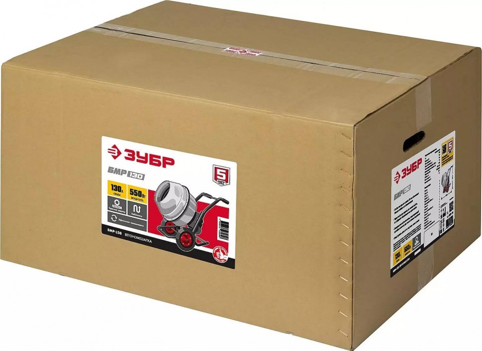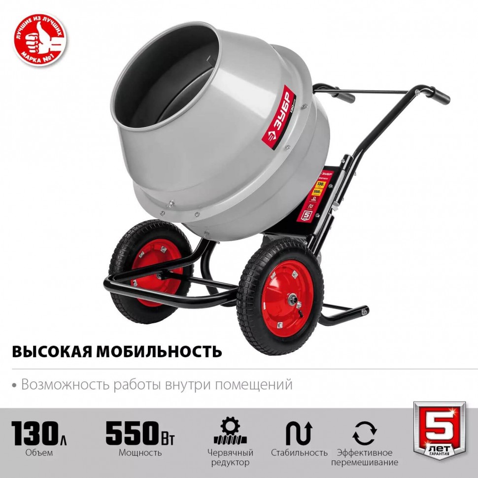 ЗУБР 130 л, бетономешалка, червячный редуктор - БМР-130