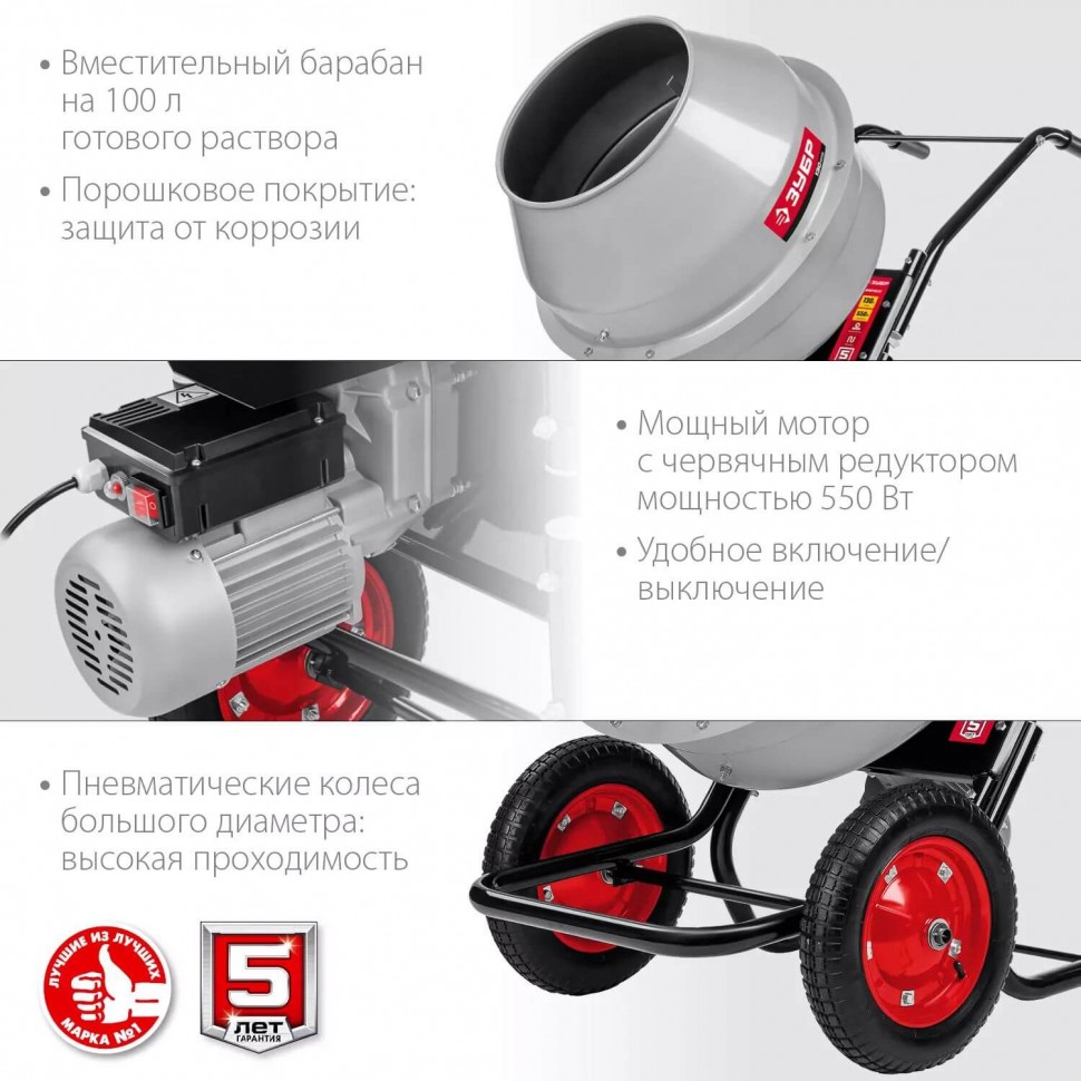 Надежный и долговечный инструмент с вместительным барабаном, с выносливым червячным редуктором является незаменимым помощником в стройке.