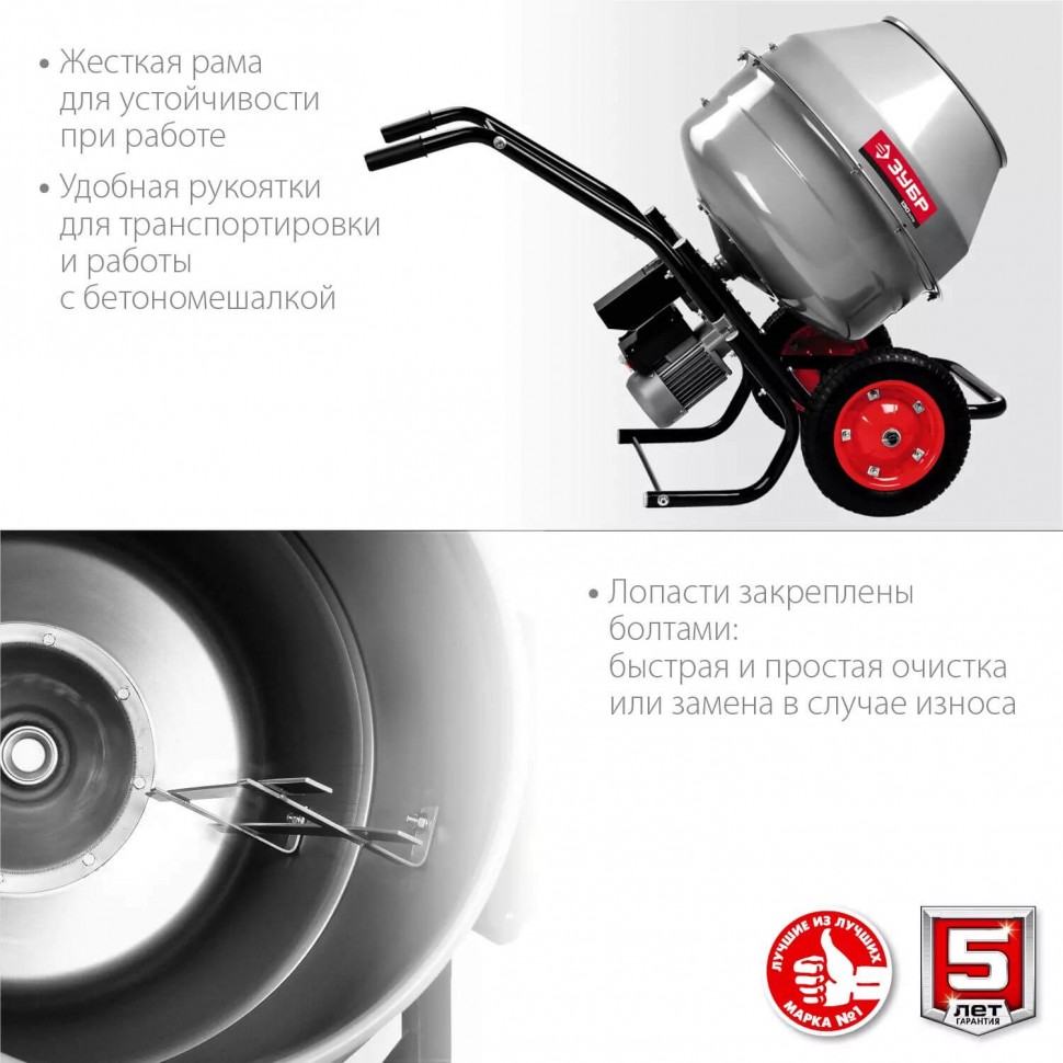 Две рукоятки и низкий центр тяжести обеспечивают большую мобильность бетономешалки в этом исполнении