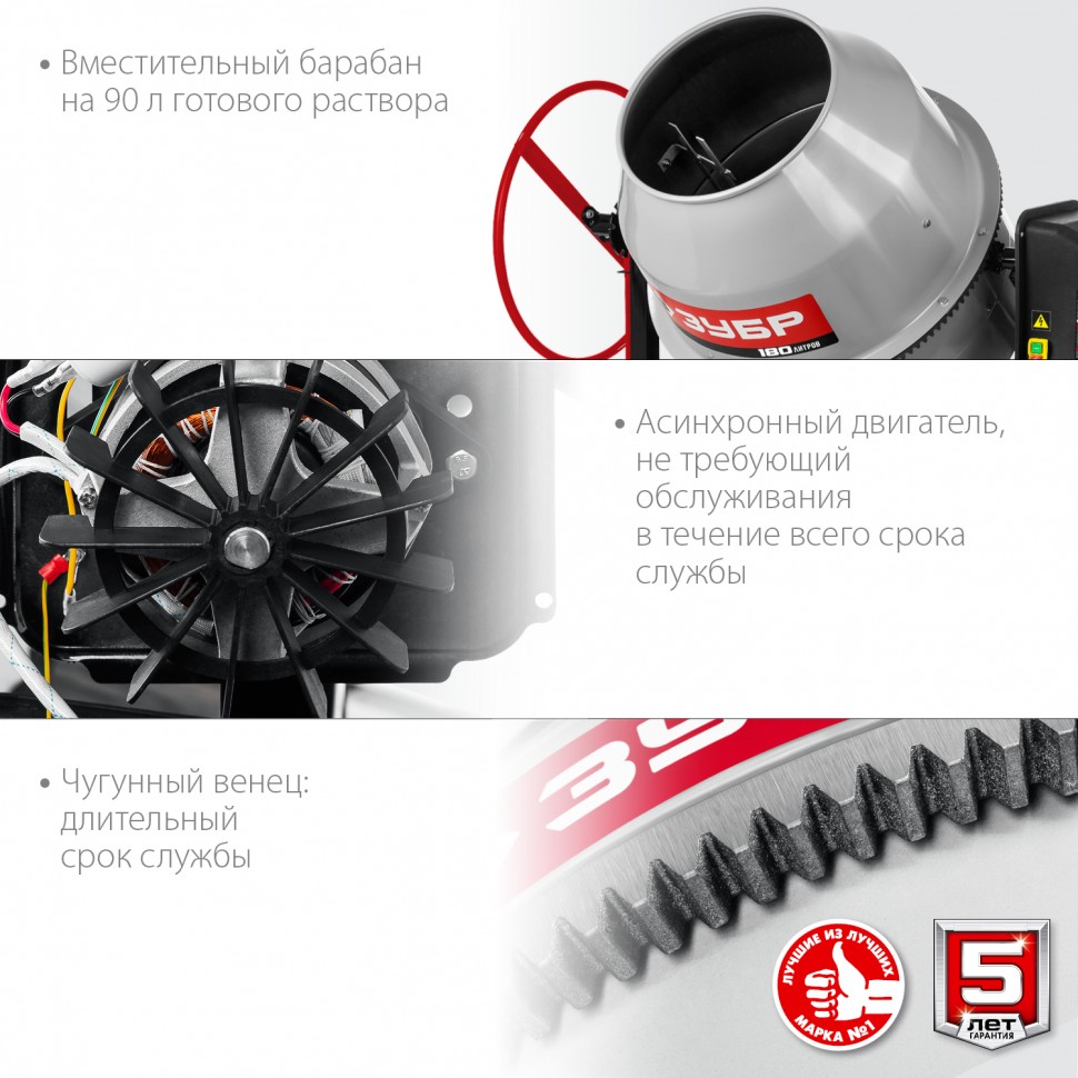 ЗУБР 180 л бетономешалка - БМЧ-180