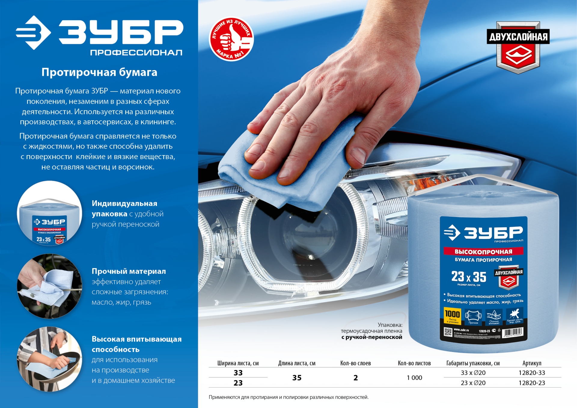 Протирочная бумага ЗУБР 12820-23, применяется для протирания и полировки различных поверхностей.