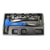 Ручной заклепочник представляет собой специализированный инструмент, предназначенный для создания прочных и надежных соединений. В комплекте поставляются разные головки, что обеспечивает возможность использовать заклепки разного диаметра, и ключ, упрощающий их замену.