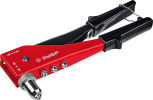 Заклепочник выполняется в литом корпусе, что обеспечивает высокую прочность инструмента. Для повышения комфорта при работе на ручках установлены пластиковые накладки, обеспечивающие комфортный хват, простоту выполнения операций. Такие ручки заклепочника являются неоспоримым преимуществом.